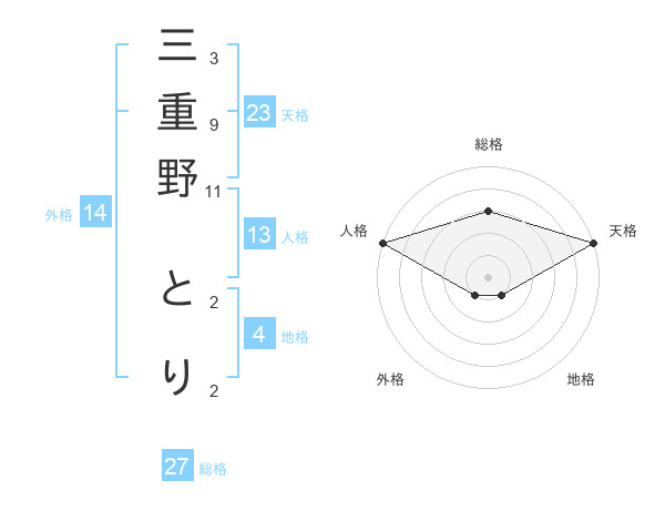 三重野 とりさんの天格は23画の5点!