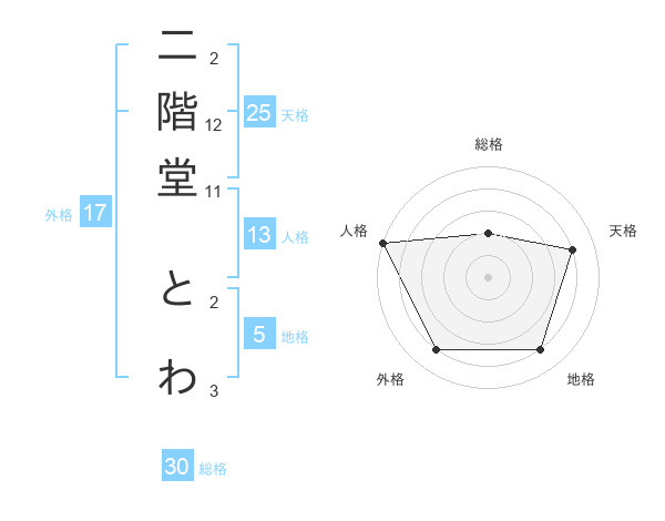二階堂 とわさんを姓名の画数から五運を鑑定
