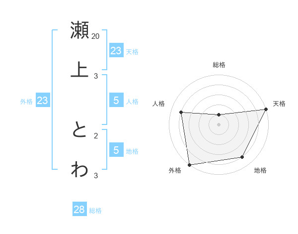 瀬上 とわさんを姓名の画数から五運を鑑定