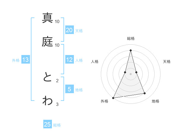 真庭 とわさんの外格は13画の5点!