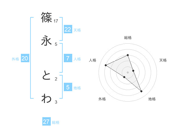篠永 とわさんの総格は27画の3点!