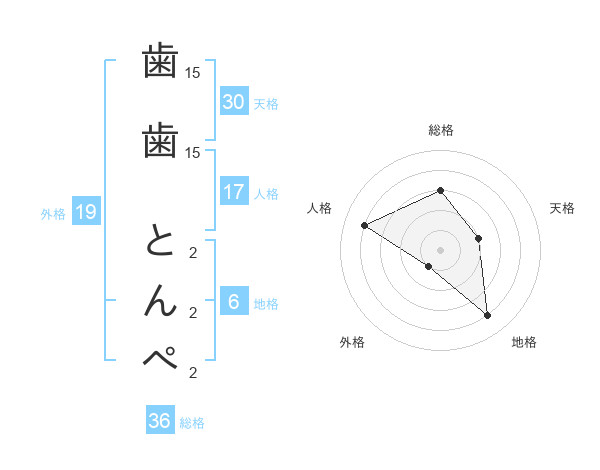 歯歯 とんぺさんを姓名の画数から五運を鑑定