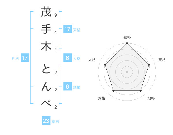 茂手木 とんぺさんを姓名の画数から五運を鑑定