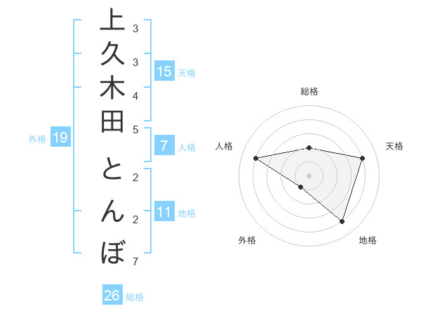 上久木田 とんぼさんを姓名の画数から五運を鑑定