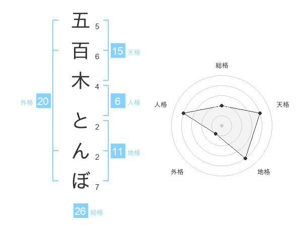 五百木 とんぼさんの天格は15画の4点!