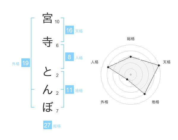 宮寺 とんぼさんを姓名の画数から五運を鑑定