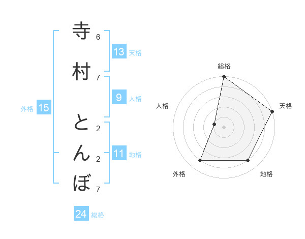 寺村 とんぼさんの総格は24画の5点!