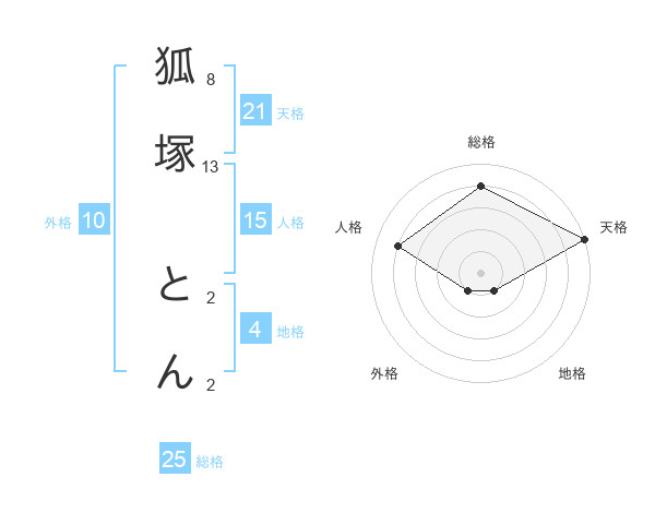狐塚 とんさんを姓名の画数から五運を鑑定