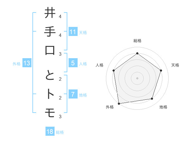 井手口 とトモさんの外格は13画の5点!