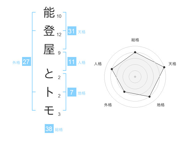 能登屋 とトモさんを姓名の画数から五運を鑑定