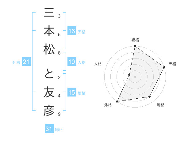 三本松 と友彦さんを姓名の画数から五運を鑑定