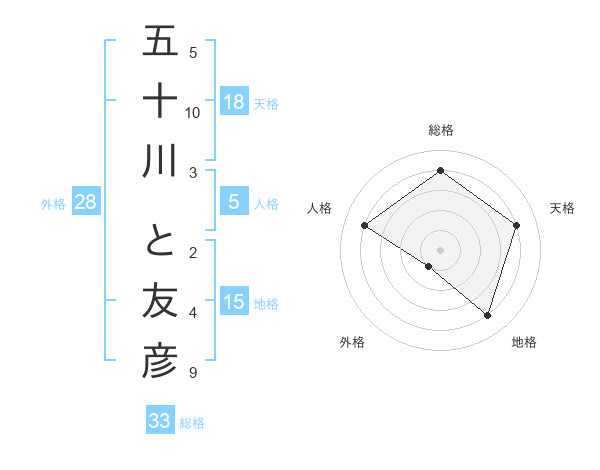 五十川 と友彦さんを姓名の画数から五運を鑑定