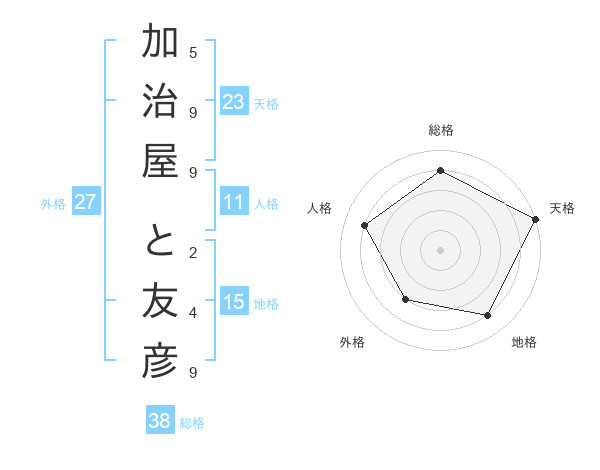 加治屋 と友彦さんを姓名の画数から五運を鑑定