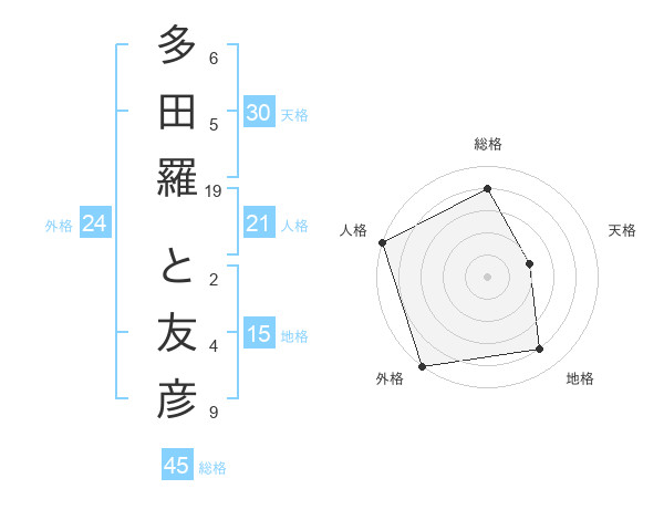 多田羅 と友彦さんを姓名の画数から五運を鑑定