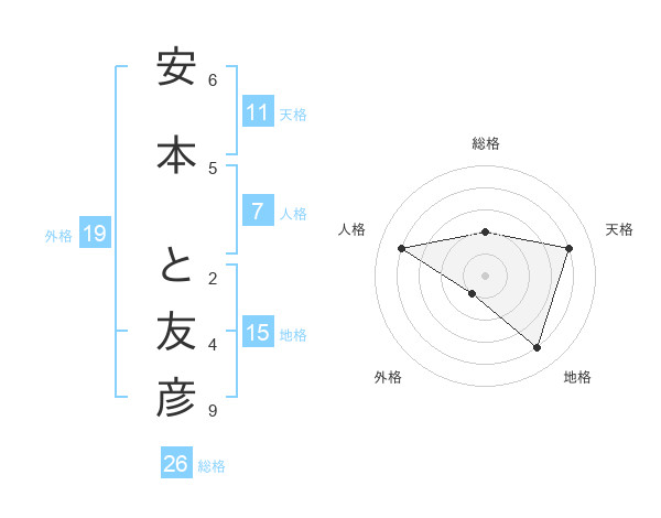 安本 と友彦さんの総格は26画の2点!