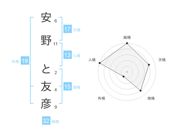 安野 と友彦さんを姓名の画数から五運を鑑定