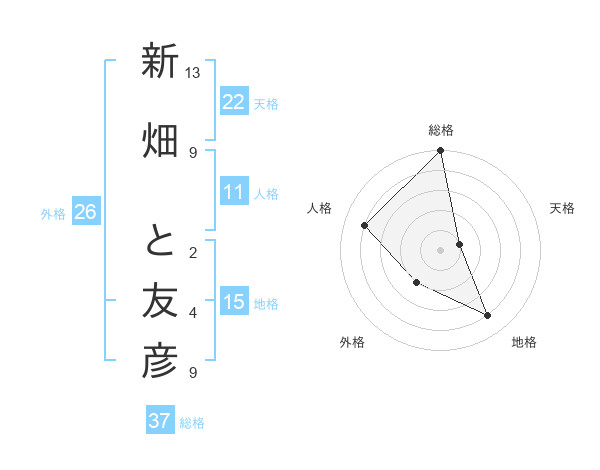 新畑 と友彦さんの総格は37画の5点
