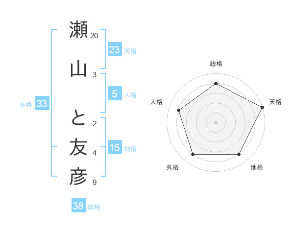 瀬山 と友彦さんを姓名の画数から五運を鑑定