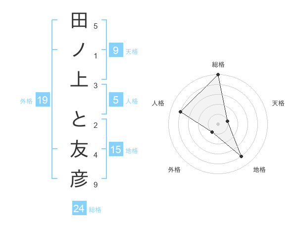 田ノ上 と友彦さんの総格は24画の5点!