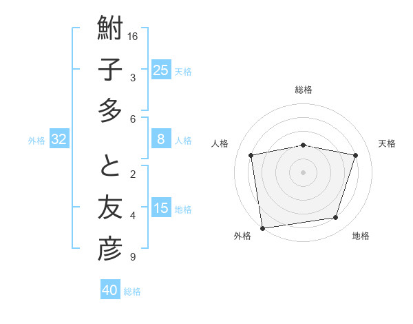鮒子多 と友彦さんを姓名の画数から五運を鑑定