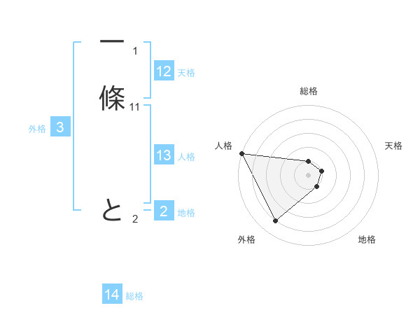 一條 とさんの総格は14画の1点!