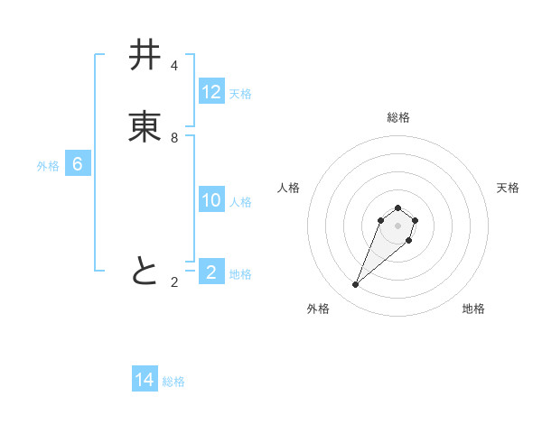 井東 とさんの総格は14画の1点!