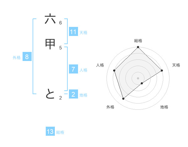 六甲 とさんの総格は13画の5点