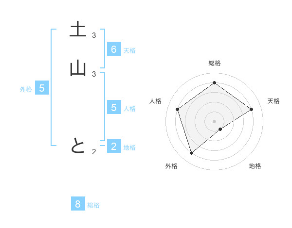 土山 とさんの総格は8画の4点!