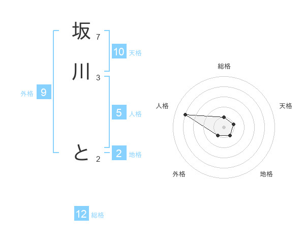 坂川 とさんの総格は12画の1点!