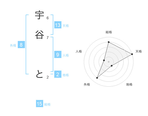 宇谷 とさんの天格は13画の5点!