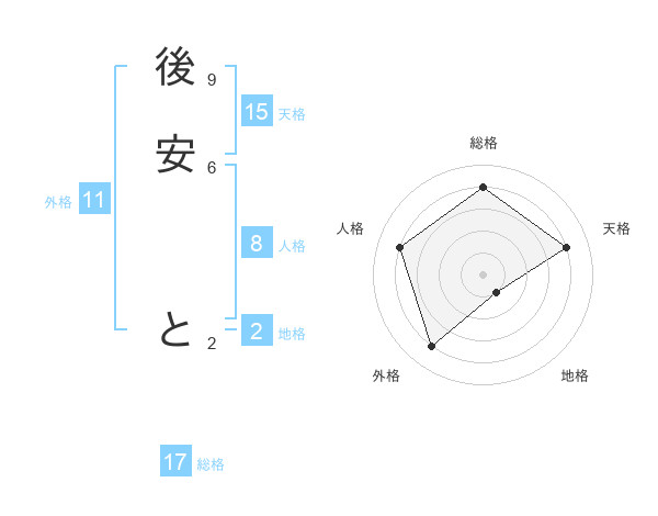 後安 とさんの総格は17画の4点!