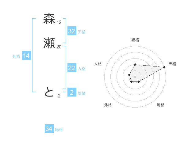 森瀬 とさんの総格は34画の2点!