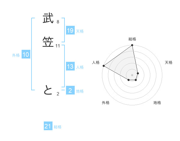 武笠 とさんの総格は21画の5点!