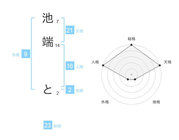 池端 とさんの総格は23画の5点!