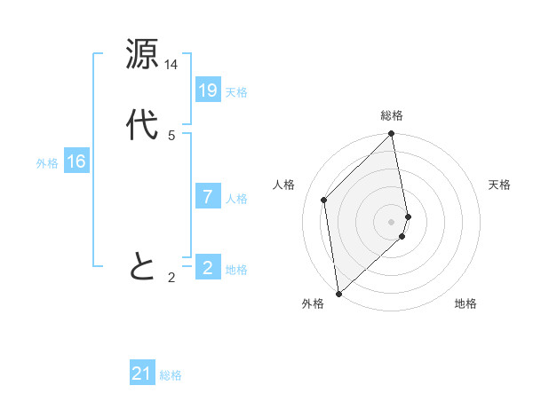源代 とさんの総格は21画の5点!