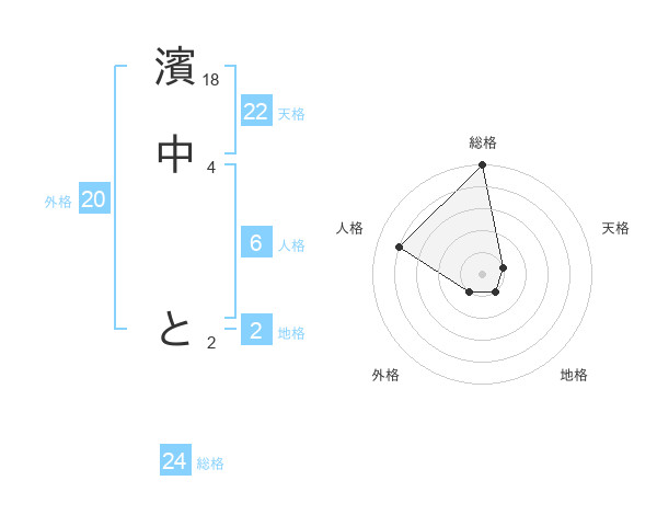 濱中 とさんの総格は24画の5点!