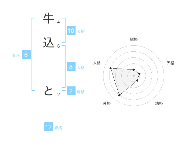 牛込 とさんの総格は12画の1点!