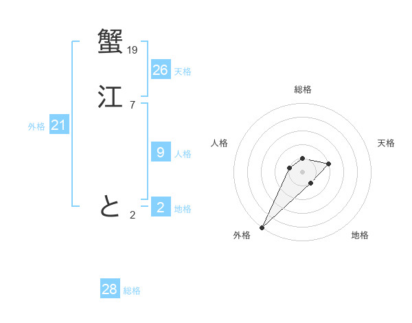 蟹江 とさんの総格は28画の1点!