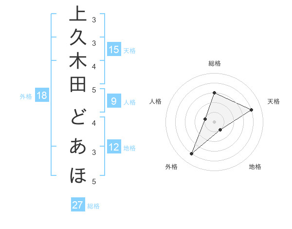 上久木田 どあほさんの総格は27画の3点!
