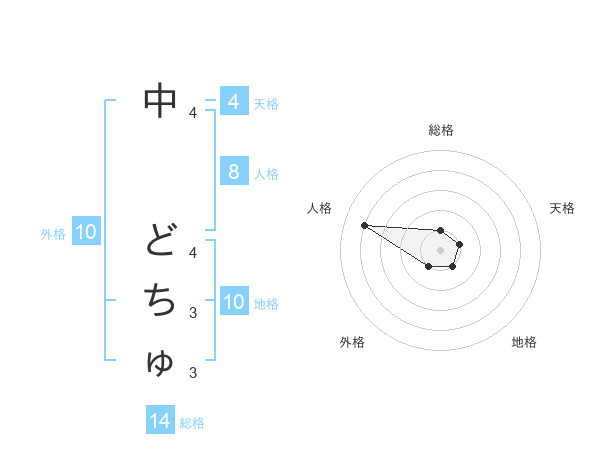 中 どちゅさんの総格は14画の1点!