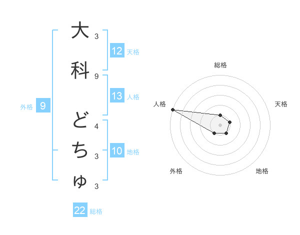 大科 どちゅさんを姓名の画数から五運を鑑定