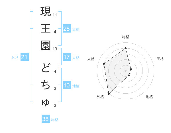 現王園 どちゅさんを姓名の画数から五運を鑑定