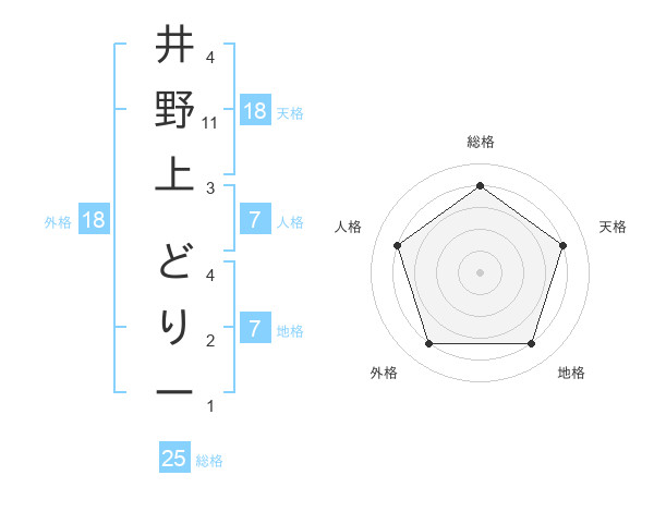 井野上 どりーさんの総格は25画の4点!