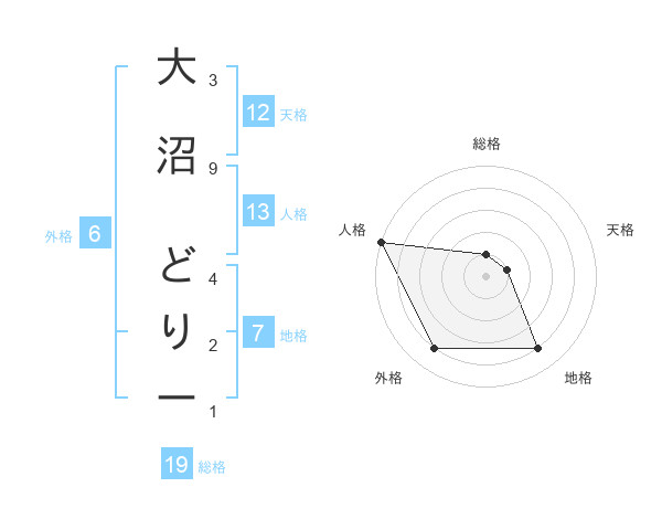 大沼 どりーさんの総格は19画の1点