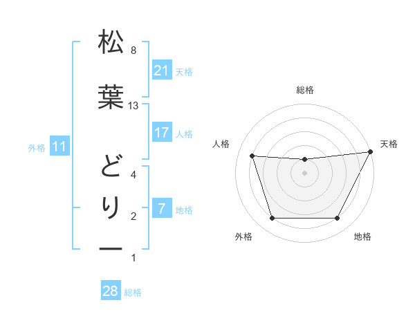 松葉 どりーさんを姓名の画数から五運を鑑定