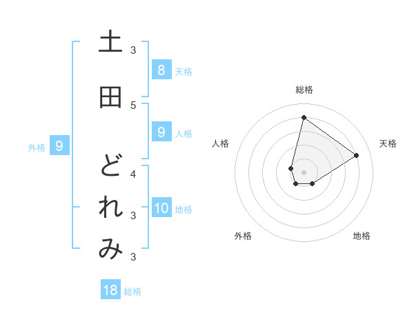 土田 どれみさんの総格は18画の4点!