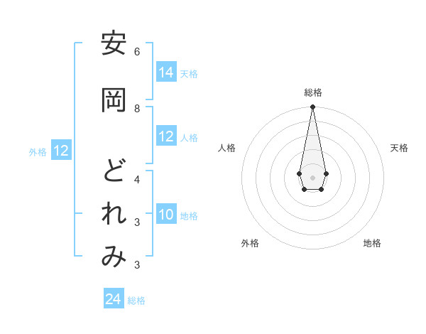 安岡 どれみさんを姓名の画数から五運を鑑定