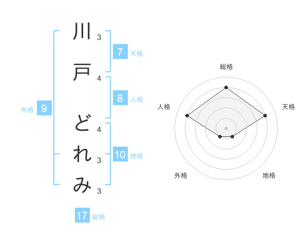 川戸 どれみさんを姓名の画数から五運を鑑定