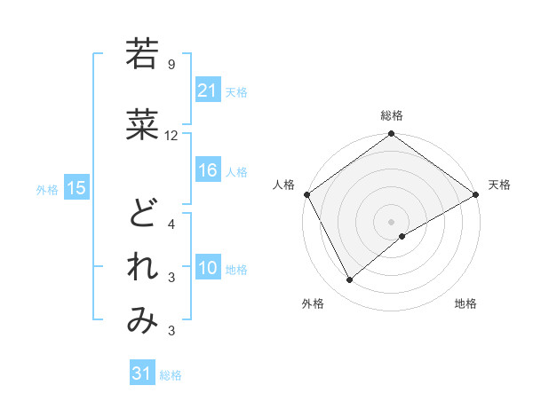 若菜 どれみさんの天格は21画の5点!