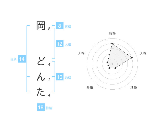 岡 どんたさんの天格は8画の4点!